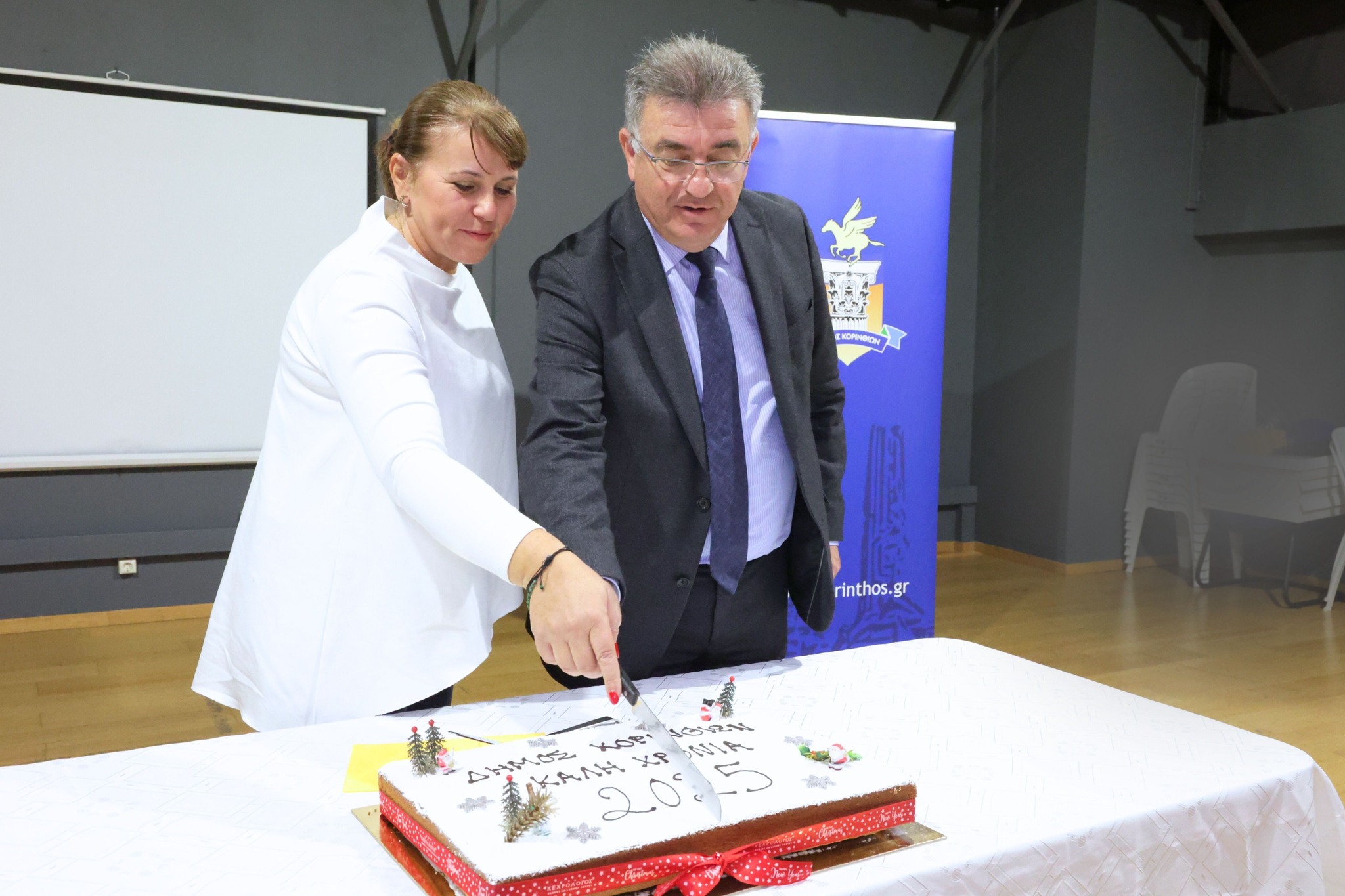 • Την πρωτοχρονιάτικη βασιλόπιτα έκοψαν χτες οι εργαζόμενοι του Δήμου Κορινθίων σε μία εκδήλωση που φορτίστηκε συναισθηματικά από την βράβευση δύο εκ των αρχαιότερων εργαζομένων του Δήμου: της Έφης Δελή και του Αντώνη Σούκουλη.