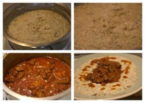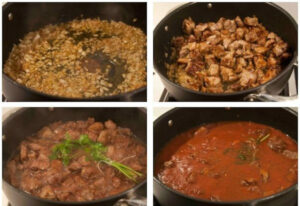 Το καλό είναι ότι το κρέας γίνεται καλύτερο αν προετοιμαστεί την προηγουμένη γιατί δένει η γεύση. Για το κοκκινιστό υπολογίστε συνολικά γύρω στη 1 ½ ώρα και για τον πουρέ που μπορεί να γίνεται ταυτόχρονα, περί την 1 ώρα. Σύνθετη συνταγή που απαιτεί και μια σχετική επιμέλεια, αλλά με μαγικό αποτέλεσμα που αξίζει τον κόπο. Αν την κάνετε πρώτη φορά, ακολουθήστε τα βήματα και τις σημειώσεις.