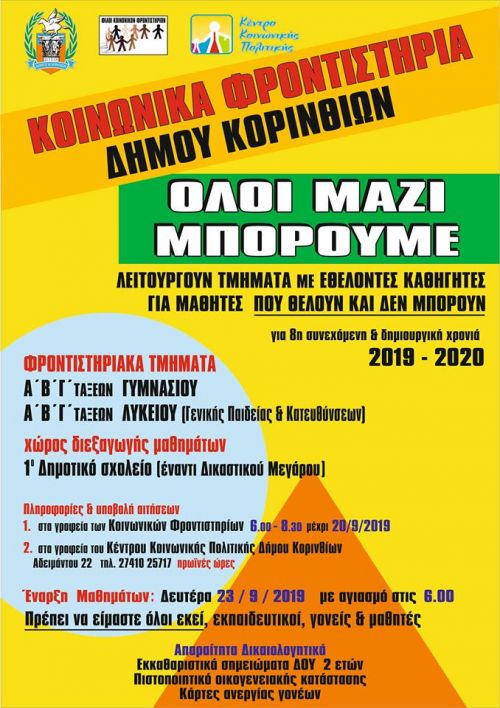 ShareTweet 0 Την Δευτέρα 23 Σεπτεμβρίου στις 6 το απόγευμα, θα πραγματοποιηθεί ο Καθιερωμένος Αγιασμός στα Κοινωνικά Φροντιστήρια του Δήμου Κορινθίων στην έδρα του, που είναι το 1ο Δημοτικό Σχολείο Κορίνθου.