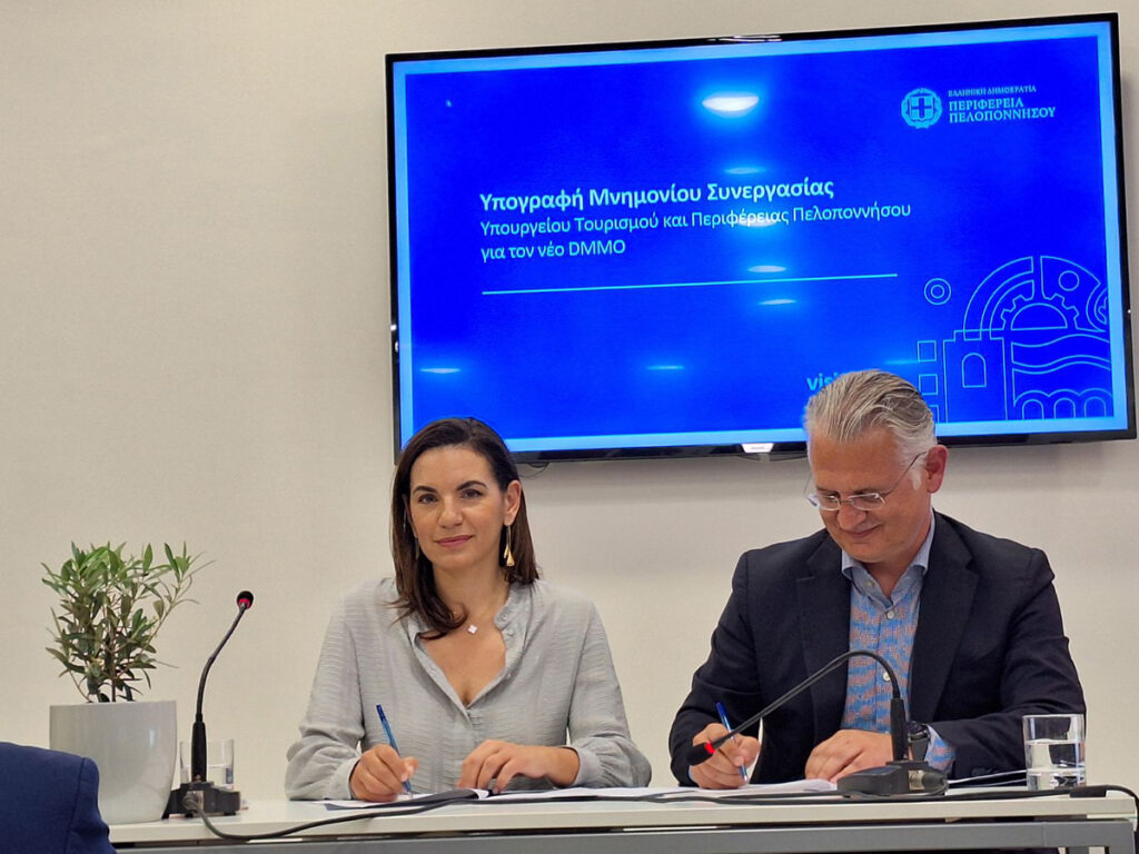 - Μνημόνιο Συνεργασίας για τη σύσταση και λειτουργία Οργανισμού Διαχείρισης και Προώθησης Προορισμού (DMMO) υπέγραψαν η Υπουργός Τουρισμού, κα Όλγα Κεφαλογιάννη, και ο Περιφερειάρχης Πελοποννήσου, κ. Δημήτρης Πτωχός.