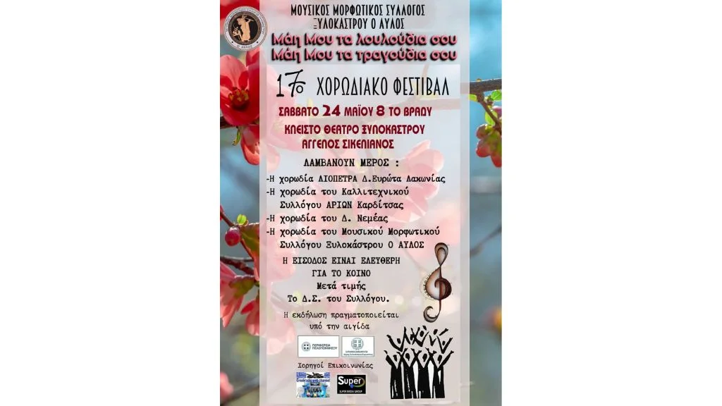 Ο Μουσικός και Μορφωτικός Σύλλογος Ξυλοκάστρου «Ο ΑΥΛΟΣ» μάς πηγαίνει μουσικό ταξίδι, μέσα από το 17ο Χορωδιακό Φεστιβάλ που διοργανώνει φέτος.