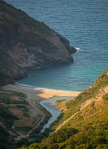 Ανάμεσα στις μικρές χερσονήσους Φράγκου και Σαρακίνικου, με φόντο τα Κύθηρα, απλώνεται η φημισμένη παραλία με τα γαλαζοπράσινα νερά και τη χρυσαφένια άμμο, προσφέροντας στον επισκέπτη στιγμές απόλυτης χαλάρωσης.