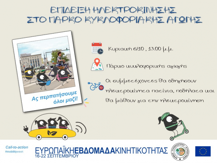 Η κλήρωση θα πραγματοποιηθεί στο Πάρκο Κυκλοφοριακής Αγωγής όπου μετά τη λήξη του παιχνιδιού θα έχουμε τη δυνατότητα να γνωρίσουμε την ηλεκτροκίνηση στο Δήμο μας.