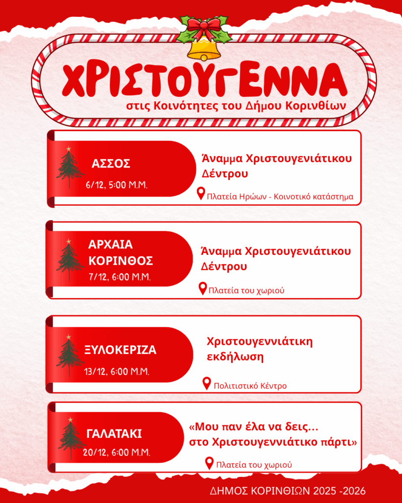 Η Κόρινθος έχει ήδη μπει στο κλίμα των Χριστουγέννων. Φέτος, στολίσαμε νωρίτερα και φωτίσαμε τους δρόμους και τις γειτονιές μας με λαμπιόνια και χρώματα, για να κάνουμε την πόλη μας ακόμη πιο όμορφη, ακόμη πιο…Χριστούγεννα, γιατί πιστεύουμε στη ΜΑΓΕΙΑ αυτών των εορτών.