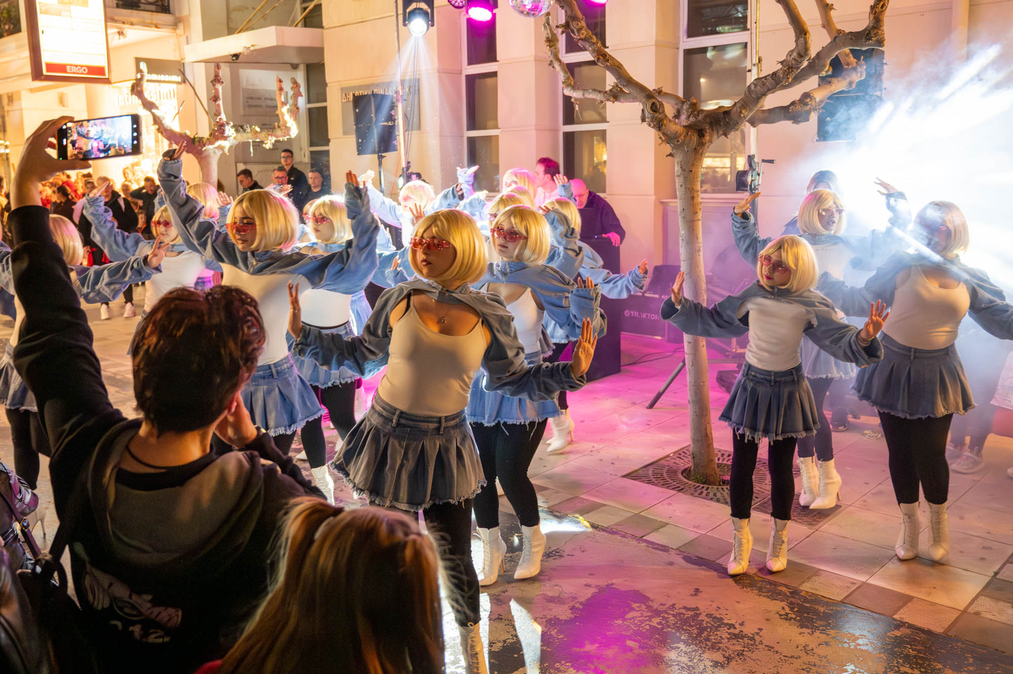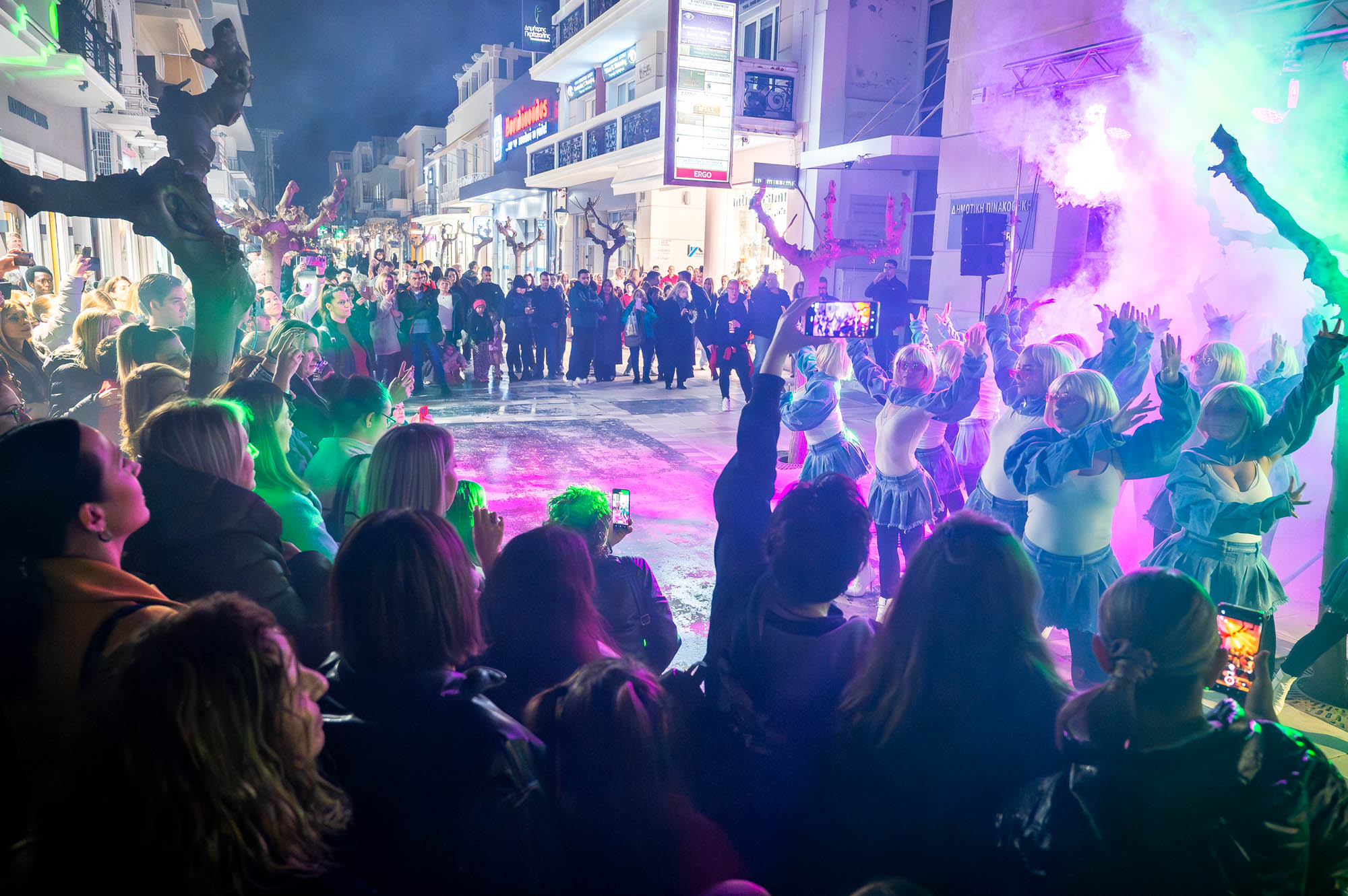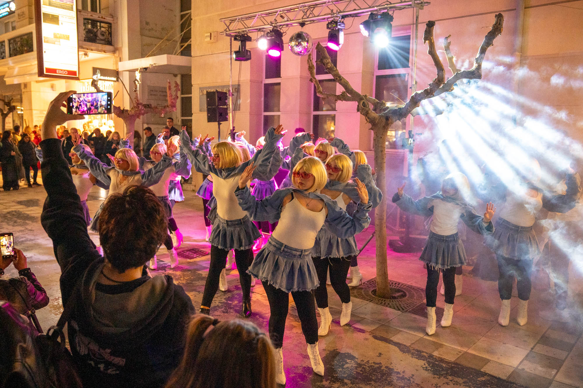 Οι ρυθμοί της disco, εκείνοι που κάποτε έκαναν ολόκληρο τον κόσμο να χορεύει κάτω από μια μπάλα με καθρέφτες, βρήκαν ξανά τον χώρο τους στον πεζόδρομο. Και δίπλα τους οι latin ρυθμοί, απόλυτα δεμένοι με το πνεύμα του Καρναβαλιού.
