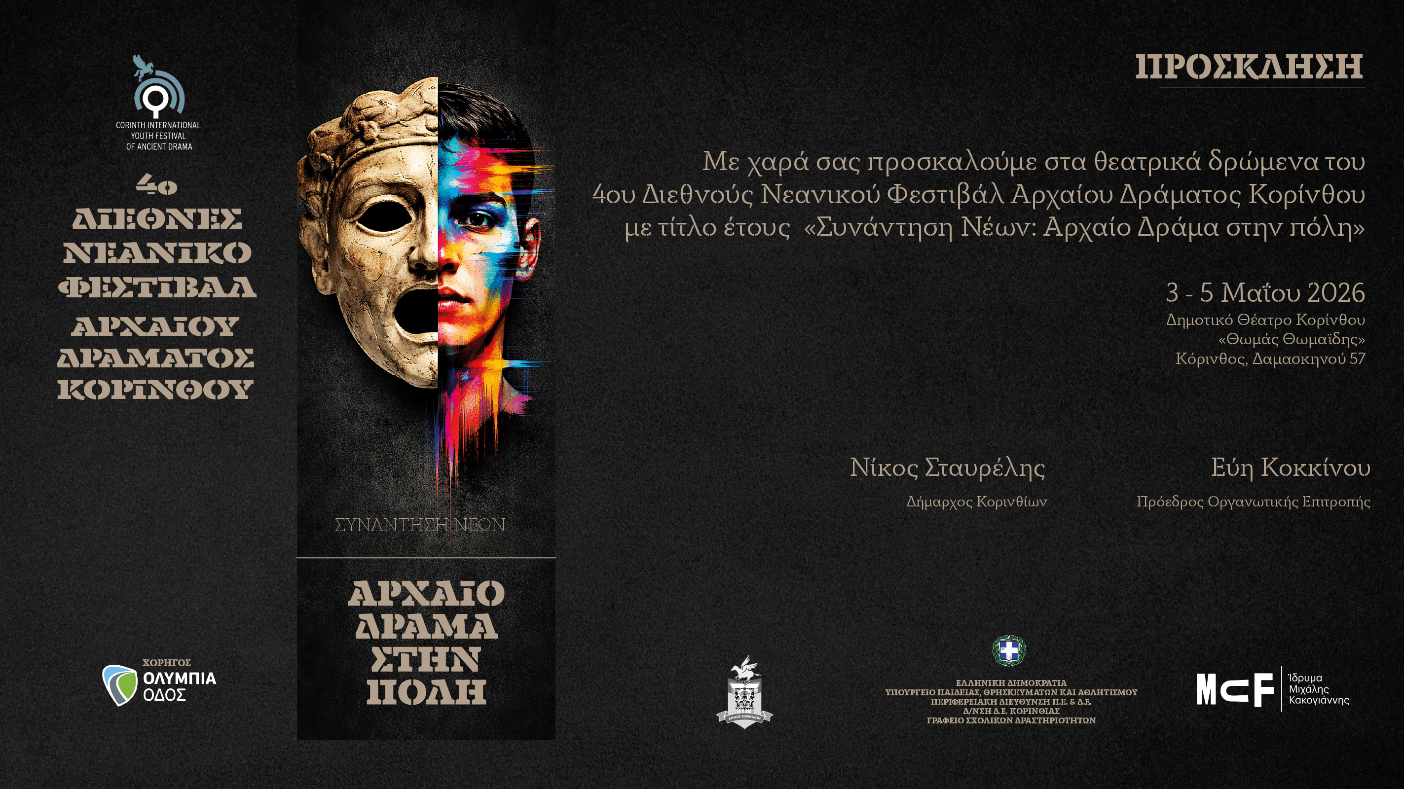 Η Κόρινθος υποδέχεται το 4ο Διεθνές Νεανικό Φεστιβάλ Αρχαίου Δράματος στις 3, 4 και 5 Μαΐου 2026.