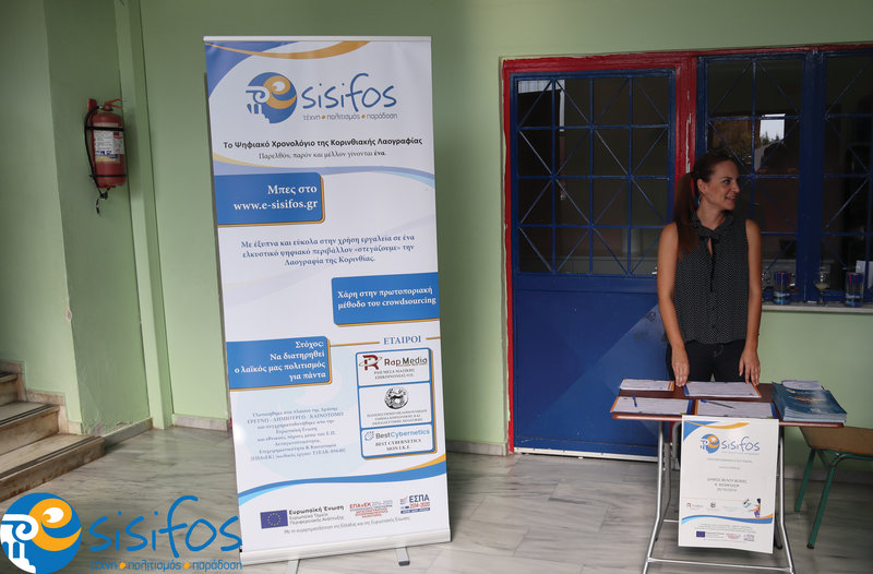 Πραγματοποιήθηκε το πρώτο από τα τρία workshop στο Δημοτικό Σχολείο Βέλου στις 10.30, την Κυριακή 20 Οκτωβρίου 2019 και το οποίο προκάλεσε ιδιαίτερο ενδιαφέρον και συζητήσεις μεταξύ των ανθρώπων που βρέθηκαν εκεί. Παρουσία του Αντιδημάρχου Τεχνικών Υποδομών του Δήμου, Θεόδωρου Ράπτη, της προέδρου του ΝΠΔΔ «Ανέλιξη», Μαρία Καλλίρη, του τ. Αναπληρωτή Καθηγητή Λαογραφίας στο Τμήμα Ιστορίας, Αρχαιολογίας και Διαχείρισης Πολιτισμικών Αγαθών, Αριστείδη Δουλαβέρα καθώς και άλλων σημαινόντων προσώπων από τον χώρο του Πολιτισμού, της Τέχνης και της Παράδοσης, έγινε η εκπαίδευση στην πλατφόρμα του eSisifos από την εταιρεία Best Cybernetics, εταίρος του έργου.