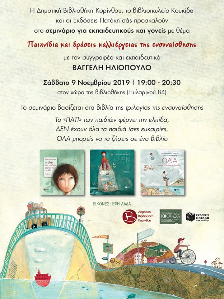 ShareTweet 0 “Παιχνίδια και δράσεις καλλιέργειας της ενσυναίσθησης” Σεμινάριο για εκπαιδευτικούς και γονείς με το συγγραφέα και εκπαιδευτικό Βαγγέλη Ηλιόπουλο, στο χώρο της Δημοτικής Βιβλιοθήκης, Σάββατο 9 Νοεμβρίου, 7.00μμ – 8.30μμ – Είσοδος Ελεύθερη