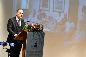 Τέλος, ο Πρόεδρος ευχαριστεί ολόθερμα την έμπειρη δημοσιογράφο, Νίνα Κασιμάτη που για μια ακόμη φόρα συντόνισε άψογα την εκδήλωση και τίμησε το Επιμελητήριο Κορινθίας, τον Δήμαρχο Λουτρακίου- Περαχώρας – Αγίων Θεοδώρων, κ. Γεώργιο Γκιώνη και το προσωπικό του Συνεδριακού Κέντρου Λουτρακίου για την φιλοξενία της εκδήλωσης, τους Φοιτητές τμήματος Πολιτικής Επιστήμης και Διεθνών Σχέσεων του Πανεπιστημίου Πελοποννήσου που με τις πολύτιμες υπηρεσίες τους συνέβαλαν  στην επιτυχία της διοργάνωσης, την ταλαντούχα  Miss Saxo Vaya (Βάγια Καλαντζή) που με το σαξόφωνο της έντυσε με μελωδία και ρυθμό την εκδήλωση και την εταιρία G4S AG GROUP SECURITY – ΓΙΑΝΝΑΚΑΣ Α ΕΠΕ που με την ευγενική της χορηγία η εκδήλωση διεξήχθη με ασφάλεια.