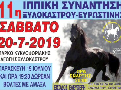 Σάββατο 20 Ιουλίου πραγματοποιείται η 11η Ιππική Συνάντηση Ξυλοκάστρου Ευρωστίνης στο θέατρο Βασίλης Γεωργιάδης, στη μαρίνα Ξυλοκάστρου. Ένα φαντασμαγορικό σόου που έχει είσοδο ...