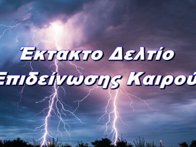 ΑΝΑΚΟΙΝΩΣΗ Σε επιφυλακή θα παραμείνουν και τις επόμενες ώρες οι υπηρεσίες του Δήμου με μηχανικά μέσα και έκτακτο προσωπικό λόγω των καιρικών φαινομένων. ...