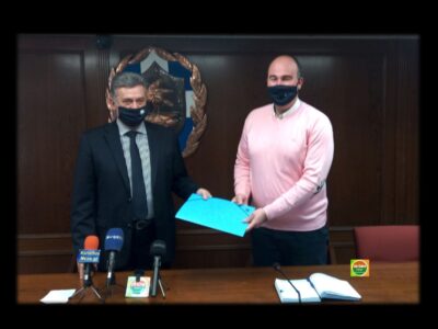 Ο Δήμαρχος Κορινθίων κ. Βασίλης Νανόπουλος παρέλαβε από τον Αντιπεριφερειάρχη Π.Ε. Κορινθίας κ. Τάσο Γκιολή, στην διάρκεια κοινής συνέντευξης τύπου, μελέτη (προκειμένου να ...