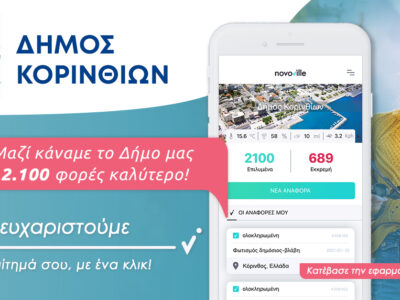 Ο Δήμος Κορινθίων συνεχίζει με μεγάλη επιτυχία τη λειτουργία της πλατφόρμας επικοινωνίας, καταγραφής και παρακολούθησης αιτημάτων καθημερινότητας δημοτών και διάδρασης Δήμου-δημότη, «Novoville», επιλύοντας ...