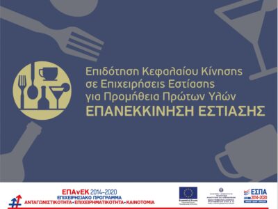 ΕΠΑΝΕΚΙΝΝΗΣΗ ΕΣΤΙΑΣΗΣ: «Επιδότηση Κεφαλαίου Κίνησης σε Επιχειρήσεις Εστίασης για προμήθεια Α΄ Υλών» Δικαιούχοι της Δράσης είναι επιχειρήσεις εστίασης, ανεξάρτητα από τη νομική τους ...