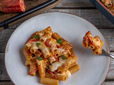 Ριγκατόνι ογκρατέν με ντομάτα, μοτσαρέλα, βασιλικό και πεπερόνι!