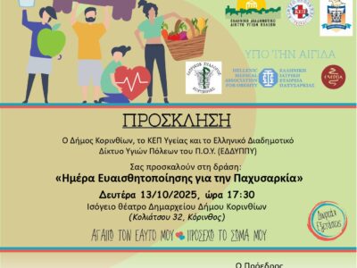 Εκδήλωση αφιερωμένη στην Ημέρα Ευαισθητοποίησης για την Παχυσαρκία στην Κόρινθο