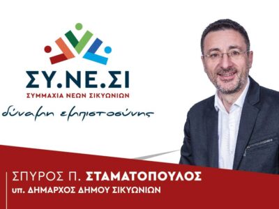 Κιάτο: ΔΗΛΩΣΗ ΥΠΟΨΗΦΙΟΤΗΤΑΣ ΤΟΥ ΔΗΜΑΡΧΟΥ ΣΙΚΥΩΝΙΩΝ ΣΠΥΡΟΥ ΣΤΑΜΑΤΟΠΟΥΛΟΥ