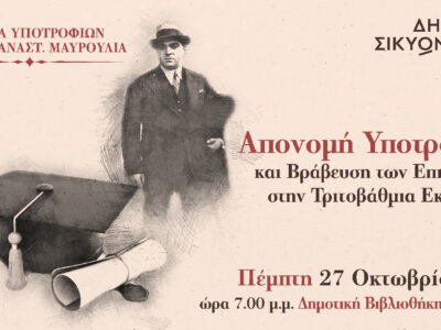 Στις 27 Οκτωβρίου 2022 στην Δημοτική Βιβλιοθήκη Σικυωνίων σε ειδική εκδήλωση μνήμης για τον Γεώργιο Μαυρούλια Το Ίδρυμα Υποτροφιών Γεωργίου Αναστασίου Μαυρούλια και ...