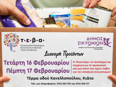 Δήμος Σικυωνίων: 650 νοικοκυριά θα ενισχυθούν με δωρεάν προϊόντα από το πρόγραμμα ΤΕΒΑ.