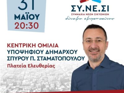 ΔΕΛΤΙΟ ΤΥΠΟΥ Κιάτο, 31 Μαΐου 2019   Την τελευταία προεκλογική ομιλία του εν όψει του δεύτερου γύρου των εκλογών έκανε ο επικεφαλής του ...