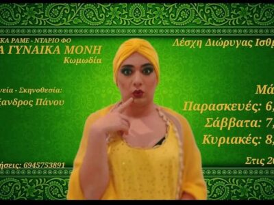 Ο Λαογραφικός Όμιλος Ισθμίας επιστρέφει και πάλι κοντά μας με την κωμωδία “ΜΙΑ ΓΥΝΑΙΚΑ ΜΟΝΗ”, σε ερμηνεία και σκηνοθεσία του ταλαντούχου Αλέξανδρου Πάνου!…για ...