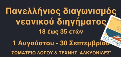 Το Σωματείο Λόγου και Τέχνης ‘’ΑΛΚΥΟΝΙΔΕΣ‘’, προκηρύσσει Πανελλήνιο Διαγωνισμό Νεανικού Διηγήματος για το έτος 2020.