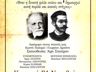 Κιάτο: «Οι Συνοδοιπόροι», θεατρική παράσταση αφιερωμένη στους Παλαμά και Δροσίνη