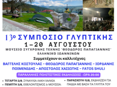 Το Μουσείο Σύγχρονης Τέχνης “Θεόδωρος Παπαγιάννης” σας προσκαλεί στο 13ο Συμπόσιο Γλυπτικής και τις παράλληλες εκδηλώσεις του που θα λάβουν χώρα από 1 έως ...