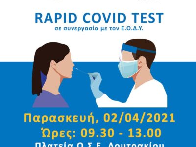 Διενέργεια ΔΩΡΕΑΝ Rapid Test COVID-19 την Παρασκευή 2 Απριλίου στο Λουτράκι