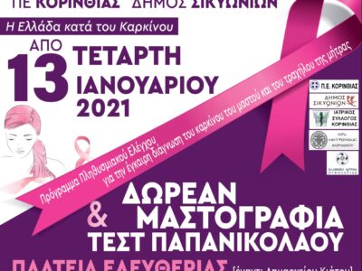 Ξυλόκαστρο: Τετάρτη 30 Δεκεμβρίου, διενέργεια δωρεάν rapid tests για τον κορωνοϊό στην Κοινότητα Δερβενίου (Ι.Νάου Αγ. Ιωάννη) και ώρες από τις 11.00 έως τις 13.00.
